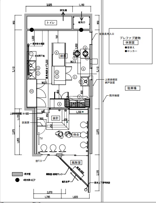 | 設備 | 給湯/トイレ別/照明/フライヤー その他各種厨房機器 |