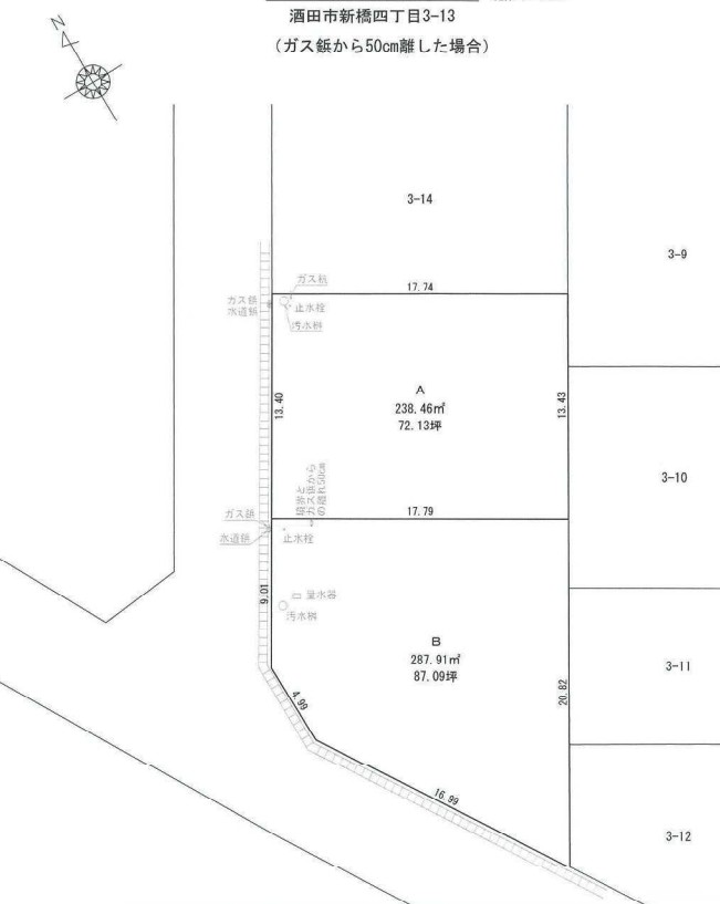 | 接道状況 | 北西6.0m 公道 接面14.0m 南西6.3m 公道 接面21.9m | 地目 | 宅地 |